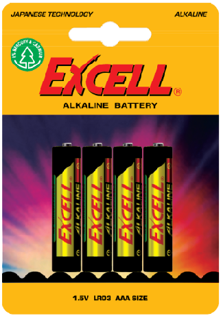 ΑΑAΤύπος : Μπαταρία LR03 Οι αλκαλικές μπαταρίες Excell χάρη στην καινοτόμο δομή και τις πρώτες ύλες έχουν μεγάλη διάρκεια ζωής δίνοντας αξία στα χρήματα σας. |